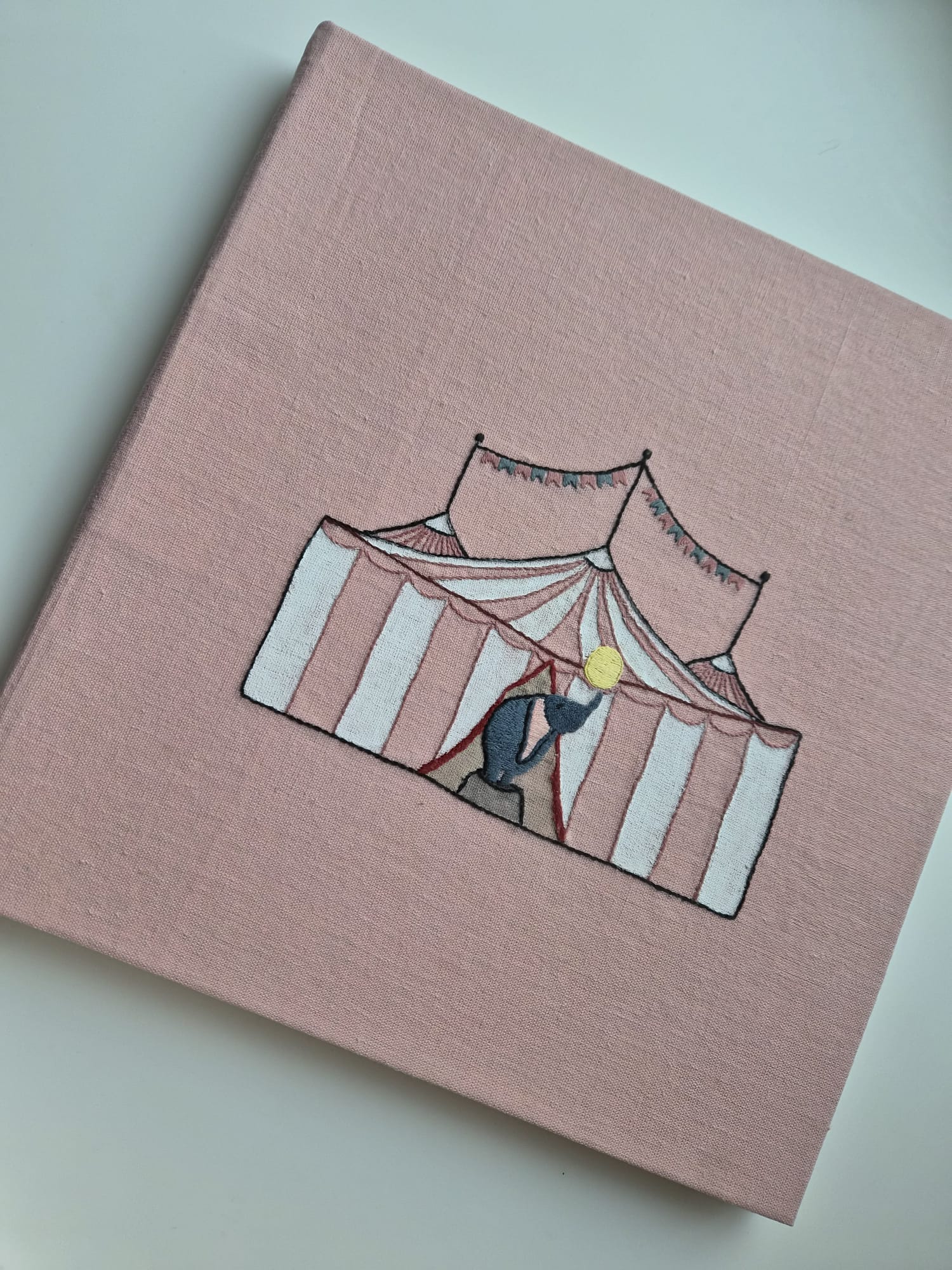 Hand embroidered cover, 80 pages.